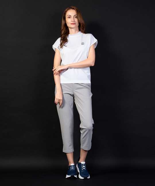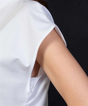 • 【BLACK】薄手ナイロンスムースノースリーブモックネックTシャツ(01ホワイト-40)
