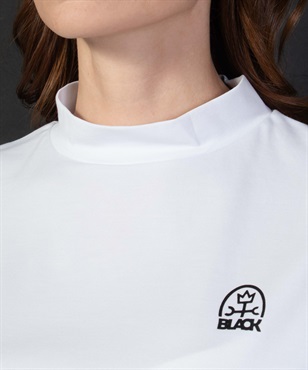 【BLACK】薄手ナイロンスムースノースリーブモックネックTシャツ