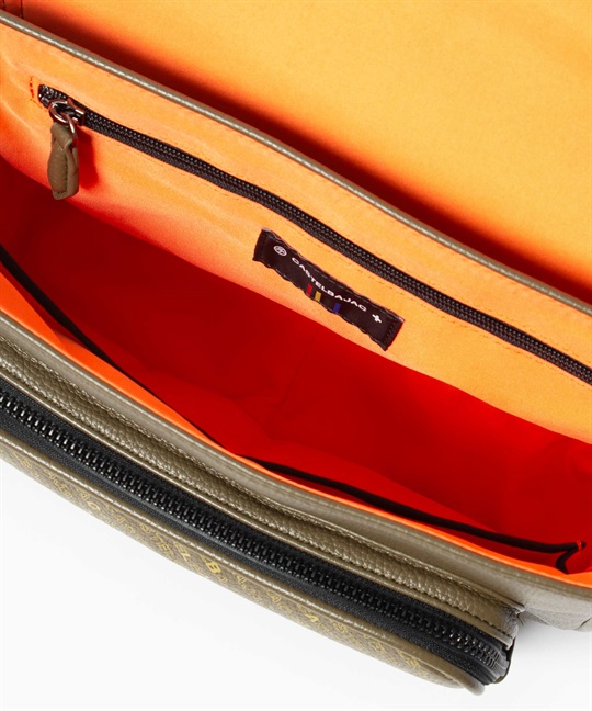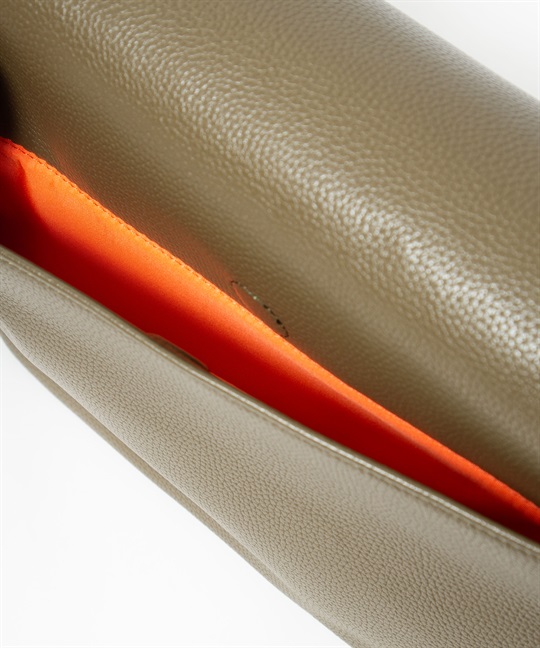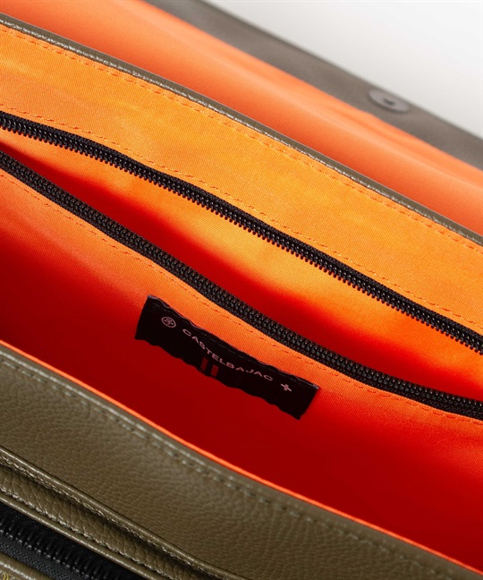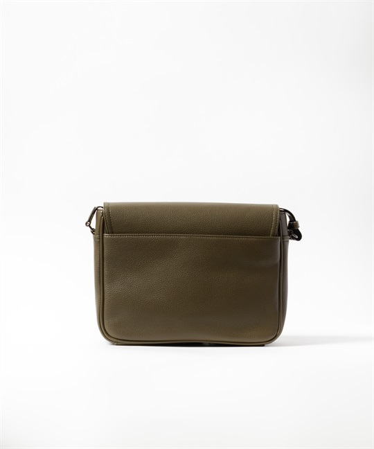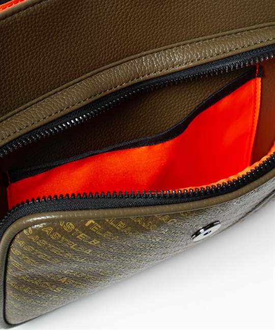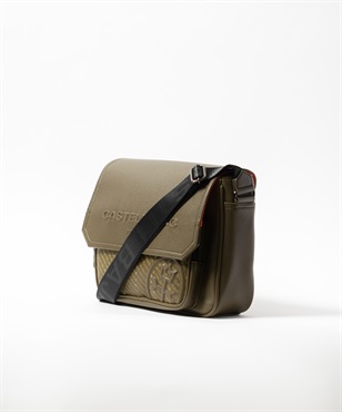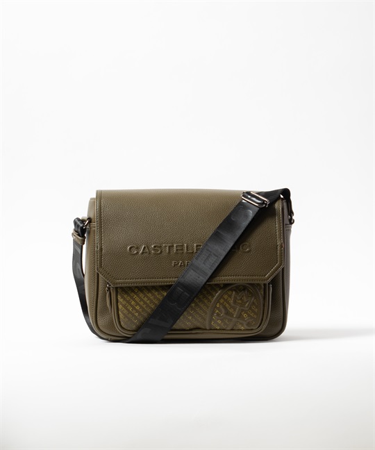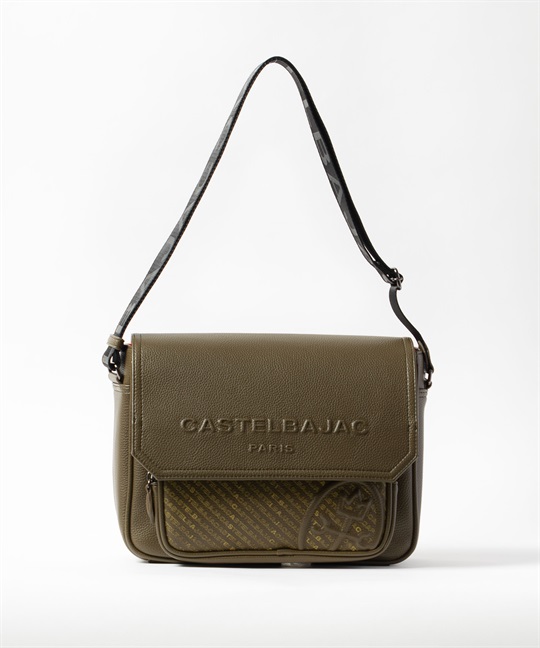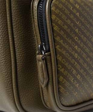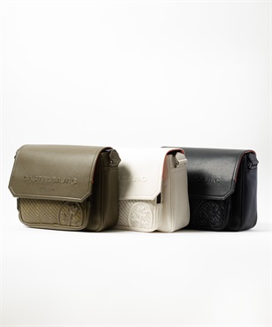 2種類のブランドロゴ表現が目を引く、カステルバジャックのカジュアルショルダーバッグ。フラップには立体感のあるエンボスロゴを、前面ポケットにはブランドロゴを連ねたアイコニックなパターンをあしらい、シンプルでありながら上品な存在感を放つデザインに仕上げています。本体素材には、扱いやすく美しい質感の合成皮革を使用しています。メインルームは500mlペットボトルがぴったり収まるサイズ感で、オープンポケットが2つとファスナーポケットが1つあります。前面にはファスナーポケットがあり、内側にオープンポケットが1つあります。背面にもマグホックポケットがあり、すぐ取り出したいものの収納に便利です。