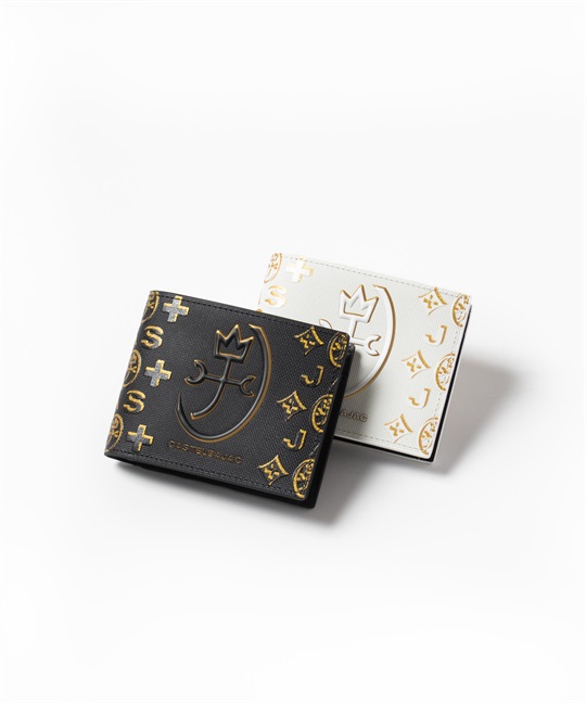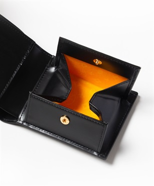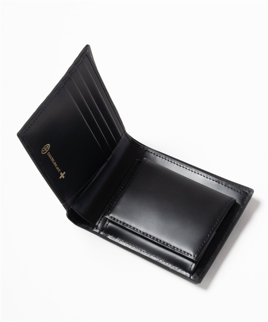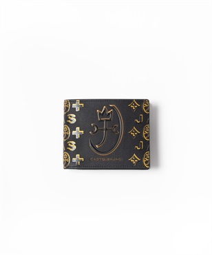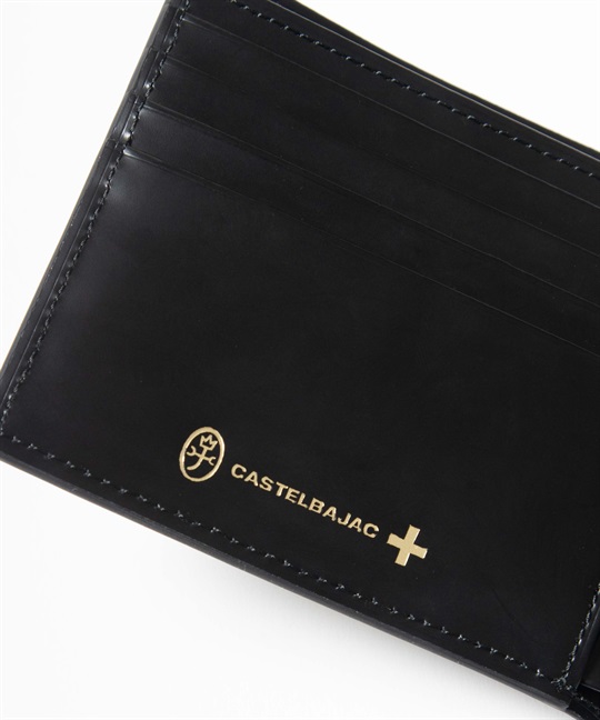ゴールドプリントが華やかなカステルバジャックの二つ折り財布。ゴールドの星屑が散りばめられたような、シャイニーで華やかな財布シリーズです。中央のブランド家紋はぷっくりと立体的に盛り上げています。バックプリントのデザインも魅力です。二つ折り財布を開くと、カード段が4つ、ポケットが3つ、札入れが2つ、小銭入れが1つあります。小銭入れはボックス型で大きく開くため、中身が見やすく小銭の出し入れもしやすい設計です。札入れスペースも2つあるため、現金とレシート類を分けて収納可能です。
